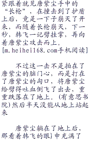轰鸣声响起,然后只见韩飞被唐紫尘这一击给直接打飞