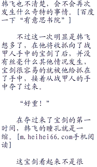 看了看战甲人,然后韩飞用手向着战甲人那杵在地上的宝剑抓了去,在动手的时候,韩飞高度警惕,虽然气场已经解决,但眼前这战甲人给人的感觉实在是怪异,