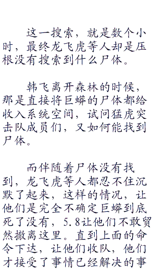 至于这森林里面还有没有其他巨蟒,韩飞已经不再去多想这个了。