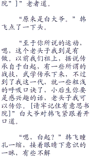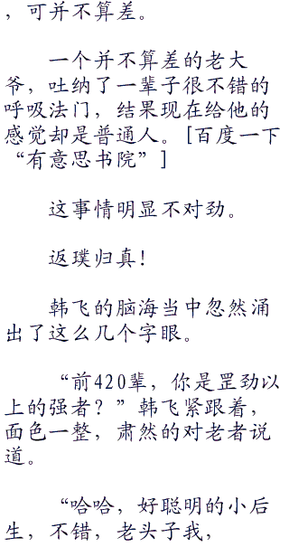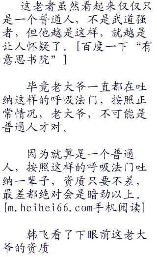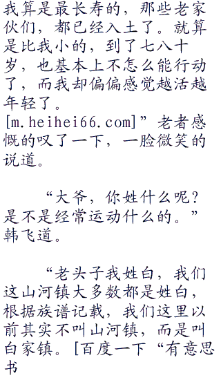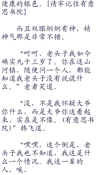 “九十三年?不会吧,老大爷,你这意思是,你已经九十三岁了?看老大爷身体情况,最多也就六十多岁啊。”韩飞有些诧异的看着眼前的老者。