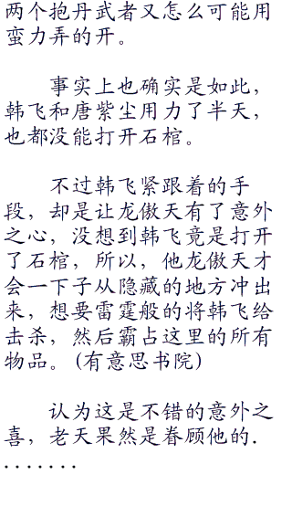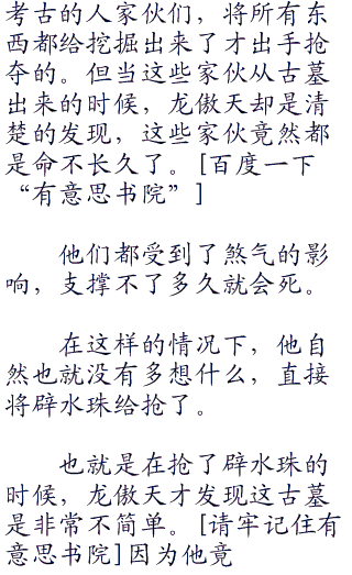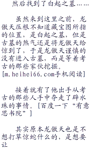 龙傲天之所以会来到白起之墓,那是因为他在乘坐大巴车的时候,竟是听到了有人在车子里面小声的交谈,交谈的信息,竟然是关于藏宝图什么的。