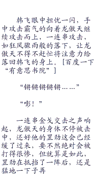 忽然,韩飞暴喝一声,暴喝的霎间,脚下蚩尤九步施展了出来,以无比玄妙的身法,蓦地一下子窥中龙傲天所露出的一个破绽,手中重玄剑重