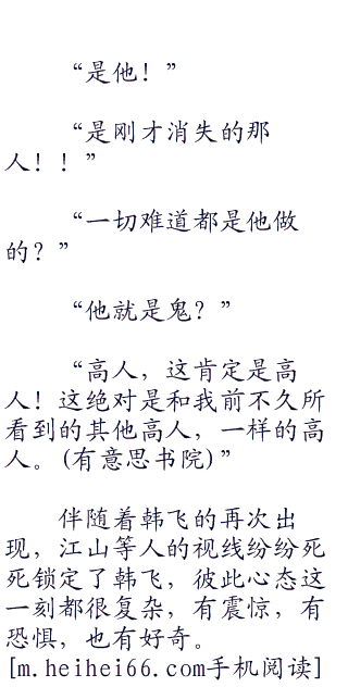 就在小黑和江山认为眼前这一幕完全是鬼怪所为的时候,忽然一道人影忽然一闪,随着人影的闪烁,韩飞的身形骤然出现在了江山等人的视线当中。