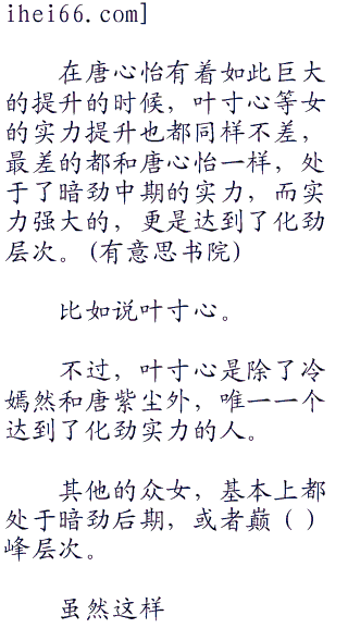 此时在藏兵谷里面,唐心怡正在打着一套拳,这是一套看起来非常玄妙的拳法,攻杀兼备,非常的厉害,比之一般的拳法而言,这一套拳所能够发挥出来的战斗力,明显是要强上不少。