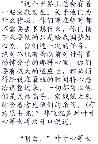 在她们没有跟着韩飞去藏兵谷之前,她们都是压根不知道什么七杀组的。