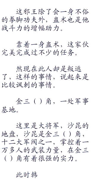 (ps:一开始看的兄弟,这一章重复了,怎么修改都缓存不过来,最后只能选择删除重发!抱歉了兄弟们,让你们有了损失,万恶的飞卢系统,坑!)