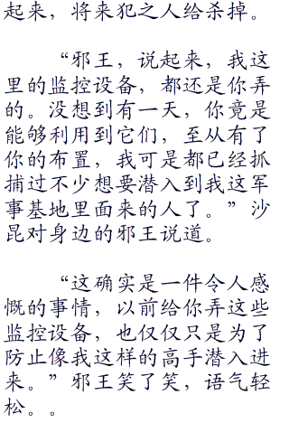 “嗯,这些事情就暂时先不提了。按照邪王你的情况,想必很快就会追杀你的人到来,所以暂时我也不能为你准备美酒接风洗尘什么,就只有等干掉了第一批的追杀者,再好好为你接风了。”沙昆应了一声,接着爽朗一笑。