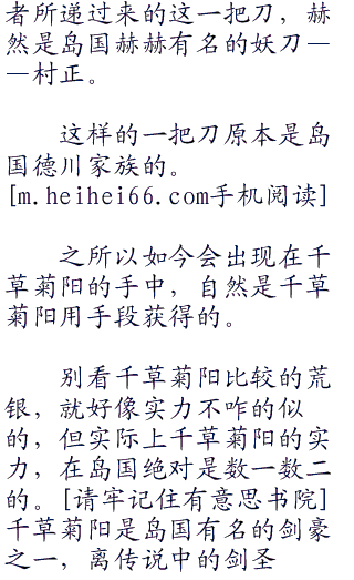 两个黑衣忍者进到房间里面来了后,纷纷单膝跪地对千草菊阳行礼。