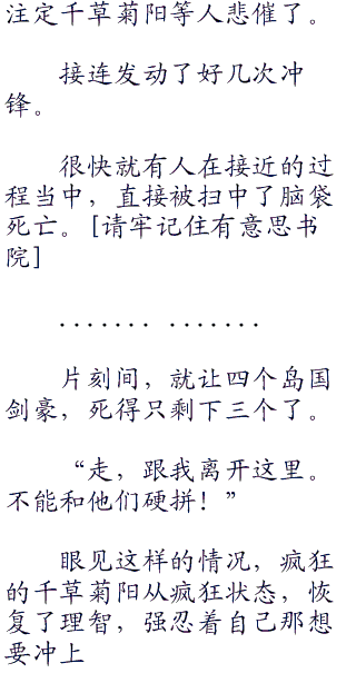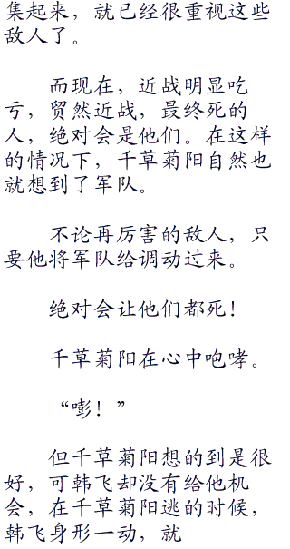 无语的摇了一下头,韩飞就对徐天龙等下了命令,不管这些千草家族的族人有多白痴,如今他们还有四个抱丹境界武者,这是绝对要将他们都给击杀的。