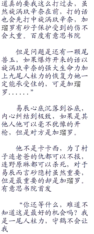 “难道真的要我这么打过去,虽然旋涡玖辛奈在前,打的话也会先打中旋涡玖辛奈,加瑠罗有砂子保护受到的伤不会太重。