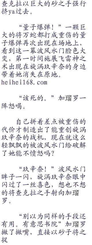 “别以为同样的手段还有用。”加瑠罗撇了撇嘴,直接以砂子将之捉住然后猛然一拉想要将几旋涡玖辛奈拉扯过来。