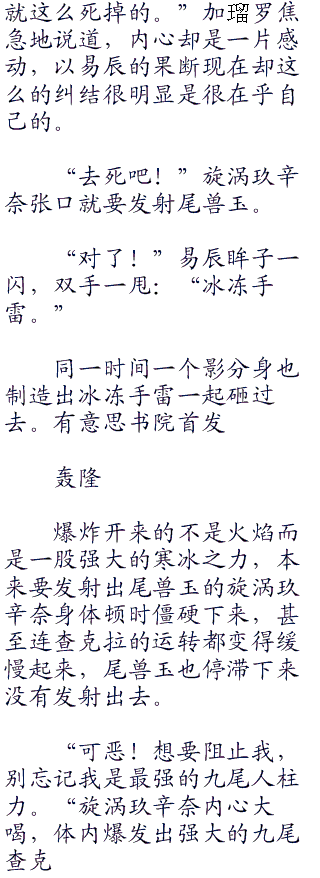 爆炸开来的不是火焰而是一股强大的寒冰之力,本来要发射出尾兽玉的旋涡玖辛奈身体顿时僵硬下来,甚至连查克拉的运转都变得缓慢起来,尾兽玉也停滞下来没有发射出去。