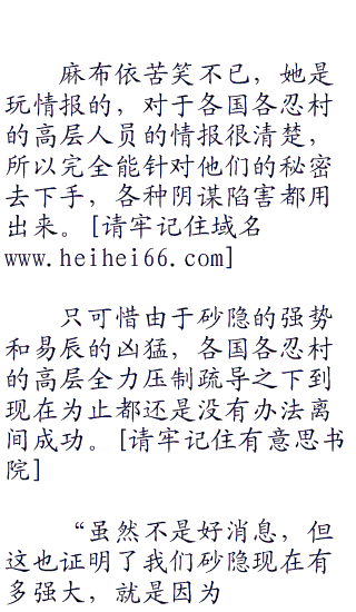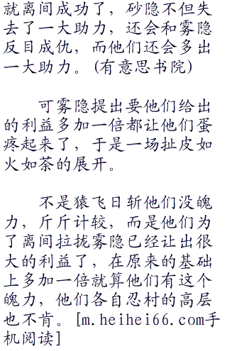 “这些家伙都被利益蒙蔽了,看不到长远的未来,一旦和木叶他们联合对付完砂隐之后估计第二个就到我们雾隐了,可现在靠这些家伙是不可能了,看来我只能兵行险着了。”