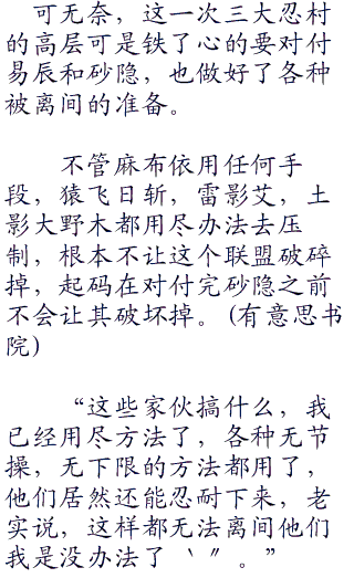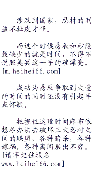如照美冥所想的一般,雾隐的答应让木叶,云隐和岩隐三者都大喜,这样他们