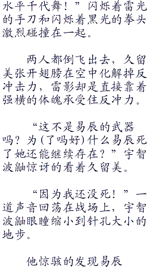 奇拉比也走了过来对麻布依这个昔日深受雷影看重的女子虎视眈眈。