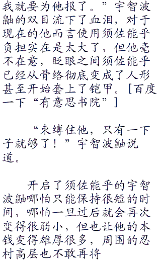 “须佐能乎!”知道这个瞳术的人都惊讶的看着宇智波鼬。