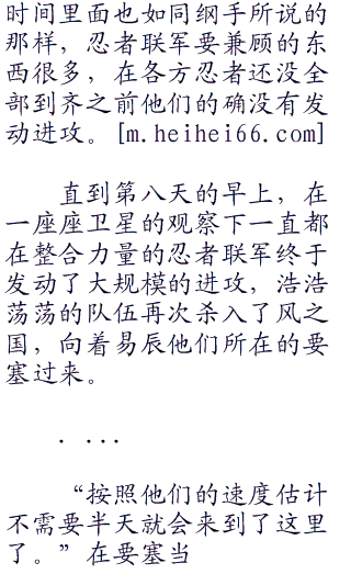 “之前你的强袭自由高达带给了他们很大的震撼,而忍者联军也不是绝对团结的,为了做到公平公正,他们会等待全部忍者到齐再发动进攻,这样可避免不必要的损失,发挥忍者联军最大的力量同时也可以做到不会给其他人觉得是特意消耗某个忍村的力量。”