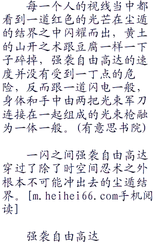 面对系度犀利无比雷影的一击雷虐水平千代舞,强袭自由高达背后射出了突击光束炮之后的光之翼立刻张开,强袭自由高化作一道流光躲开了雷影的忍体术。