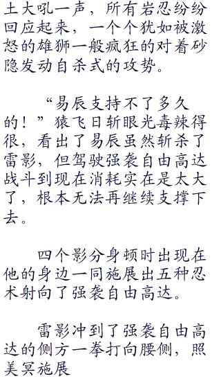 本来就身体移动速度达到骇人地步的雷影在轻重岩之术的帮助下更是如若神助。