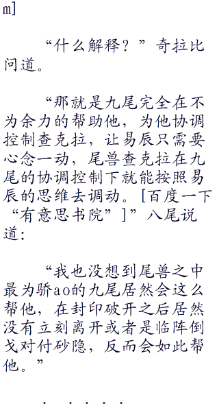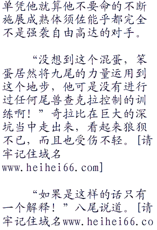 “糟糕了!”奇拉比体内的八尾脸色大变:“虽然只是九尾的一半查克拉,但只要能完美的运用这一半查克拉都是十分的可怕的,挡不住啊!”