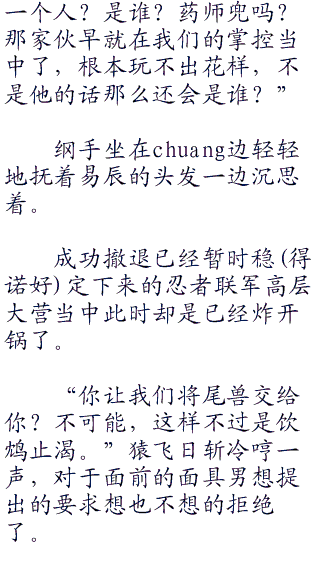 “你要我防备的人是他吗?”纲手走过来说道,她没有和其他砂忍,雾忍一眼开心,相信她的神色沉重得很。