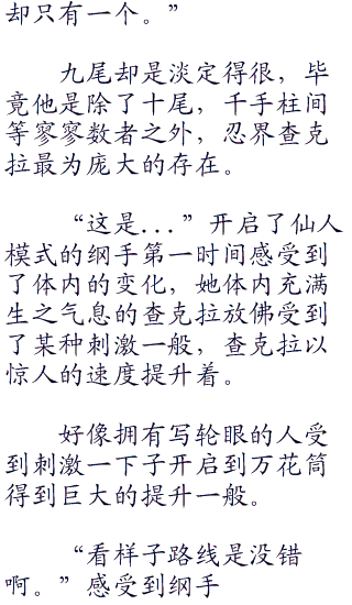 “如果真的可以的话以纲手本身的实力加上完美的仙人模式,一旦觉醒木遁,哪怕觉醒时间尚短,还还发将木遁开发运用到千手柱间的地步,但只“一八零”要是真正的遗传自千手柱间的木遁的话也能让纲手达到超影级的地步。”