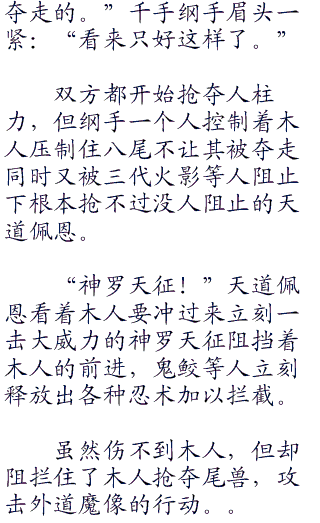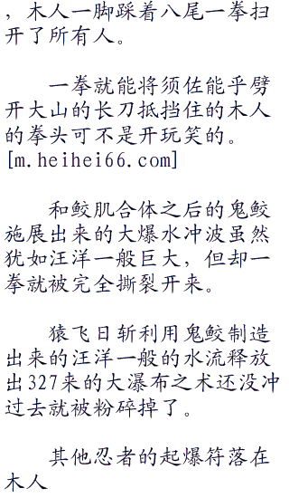 “有点意思!”纲手微微一笑,木人一脚踩八尾一拳轰向外道魔像。