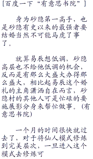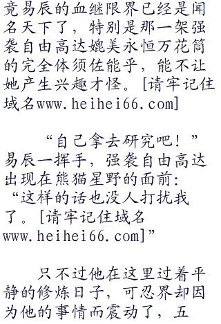 “你不是快要结婚了吗?怎么还跑来紫竹林呢?”熊猫星野看着坐在一边修炼的易辰说道:“就算你要修炼也不差这么一点时间吧!”