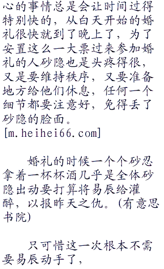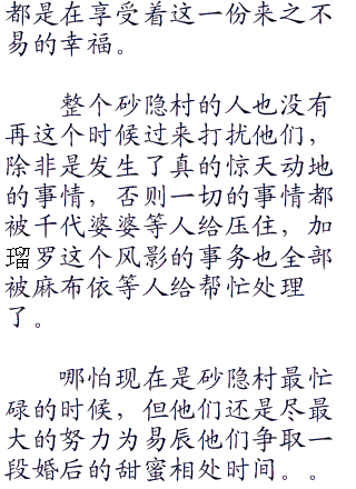 “九尾,你说结婚真的那么好玩?那么开心吗?”守鹤碰了碰九尾。