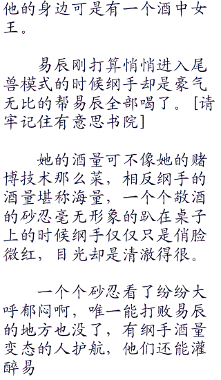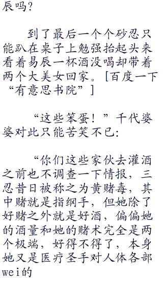 加瑠罗,易辰,纲手都没有了亲人,都是孤儿,但易辰有一个老师,所以就敬了千代婆婆一杯。