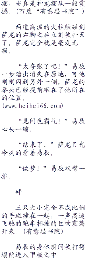 “你这是火柴的火焰吗?”面对速度飞快的额易辰,萨龙发出了他特有的大笑声。