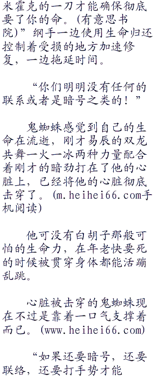 “米霍克的那一刀!”鬼蜘蛛回想起刚才自己右臂的抽搐。