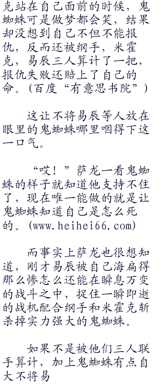 刚才被他一击打落下去虽然受伤不轻,但却借此机会攻向鬼蜘蛛。