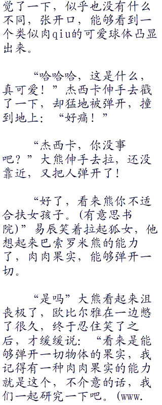 “那我就吃了!”巴索罗米熊十分兴奋的,把果实往自己身上擦了擦,一口吞下。