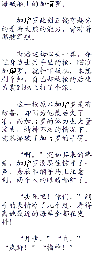正在他们关心恶魔果实的时候,海军竟乘其不备,两颗炮弹正好瞄准易辰的后背。