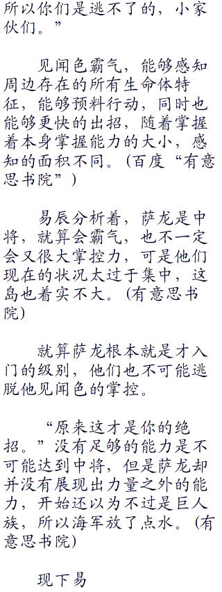 在伟大航路前半段和后半段不同,霸气根本不是随便什么人都会得东西,所以攻击力十分强大,最终要他们之中也没有任何一个人会霸气。
