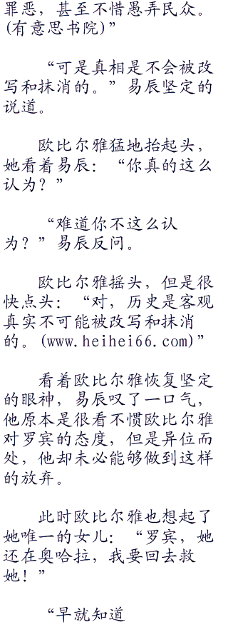 易辰看了看欧比尔雅,现在欧比尔雅不知道那通电话的意义,所以才会有疑问。但是易辰是知道的,应该说,是这两天想明白的。