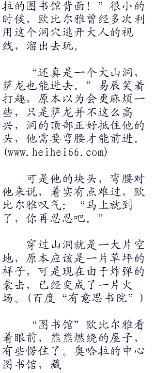 “跟我来,这边有一个山洞!”欧比尔雅落地之后,迅速站起来,朝着她知道的路跑去,好在有个熟悉地形的人,为他们省去了不少麻烦。