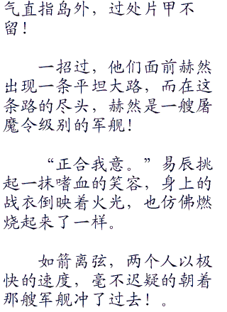 海面就像突然的炸开一般,顺便出现一道空隙,两边浪花掀起,如同巨大水幕,音速战舰乘机向前,直接搁浅在海岸。