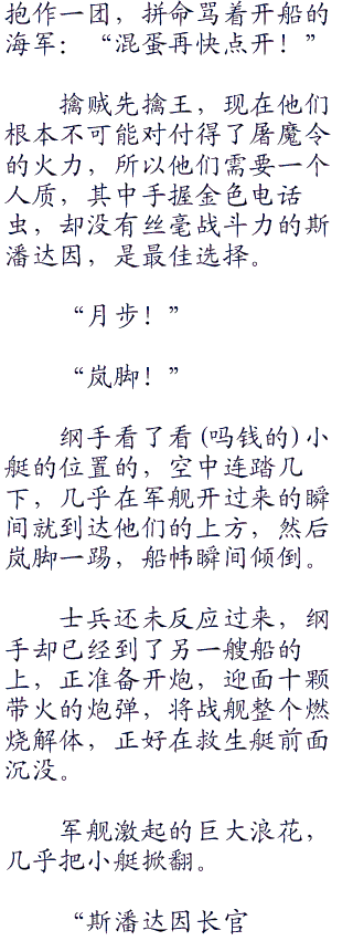 “那边似乎很开心。”纲手在踢倒一个上尉的时候,看到了原本主舰上打斗的情形。