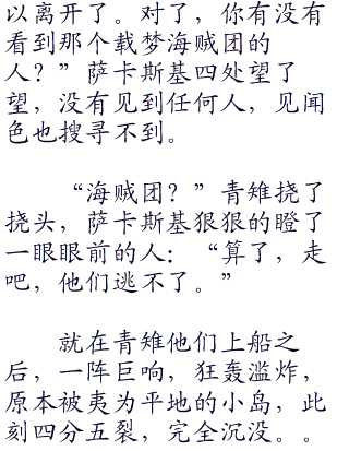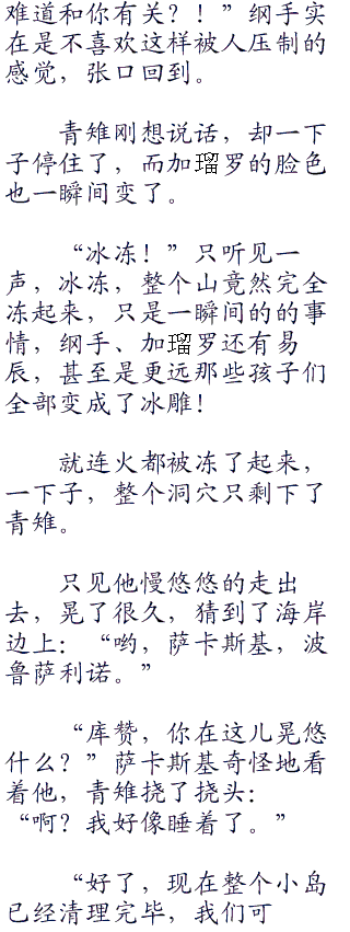 不知道为什么,加瑠罗总觉得十分奇怪,虽然是海军,这个人跟他们所见的海军完全不一样。她仔细观察着,青雉的脸色似乎也不是很好看,没有紧皱似乎在抗拒什么。