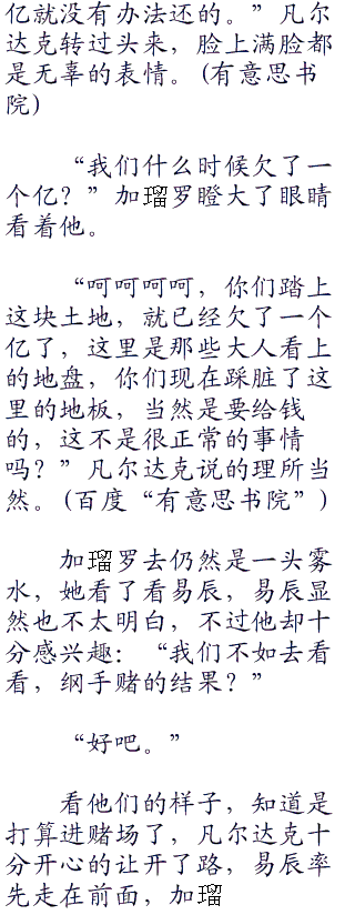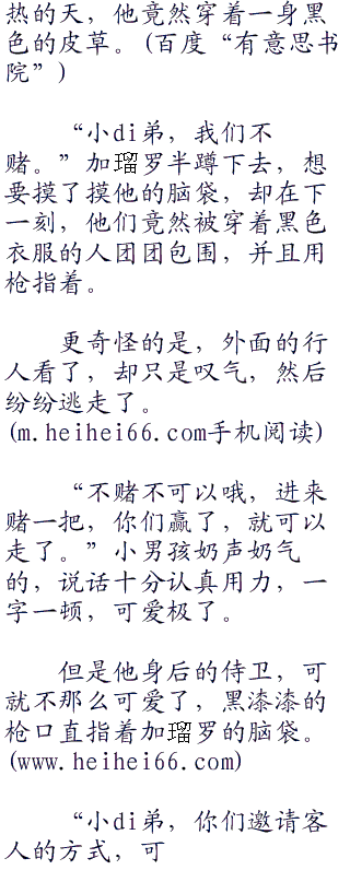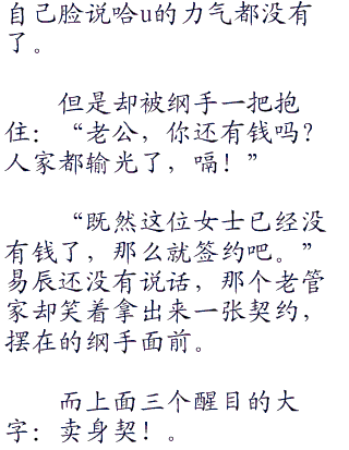 “不仅仅能够用人抵押,你有什么,给他们,他们就会估价,那个价钱就会成为你的赌资。”旁边看热闹的人,小声的说着:“你们是外面的人,快走吧,不然就走不了了。”
