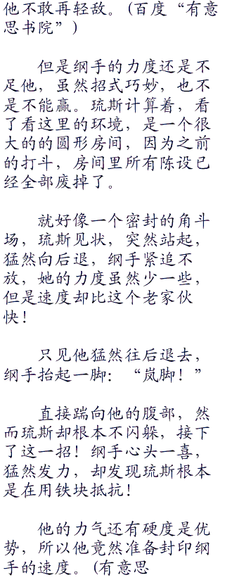 “月步!”纲手瞬间移动,只听见轰隆一声,琉斯竟然这样直接将一面墙整个踏榻了一块,这样力度原本应该令人称赞。