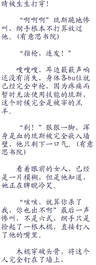 纸绘已经不可能,琉斯只能迅速蹲下,以躲过大部分攻击,但是小腿上还是狠狠中了一招,尽管及时以铁块抵挡,但还是不免,被弄出一个血窟窿。