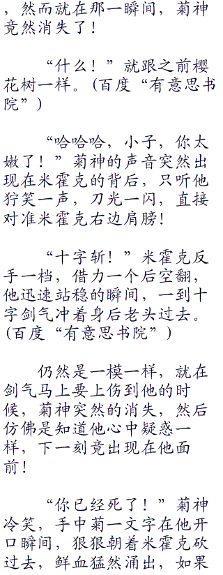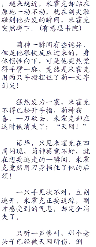 这样看似无害的一招,竟然无从抵挡!这个男人,似乎并不简单。菊神眼神一下子凌厉起来,他缓缓闭上眼睛:“一字斩!”
