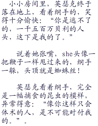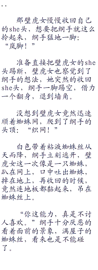 “霍嘻嘻嘻,你真是个笨蛋!”笑声再次响起,纲手猛然后退一步,她往头顶看过去,只见一个穿着绿色紧身衣的女人,像是一只壁虎一样挂在墙壁之上。
