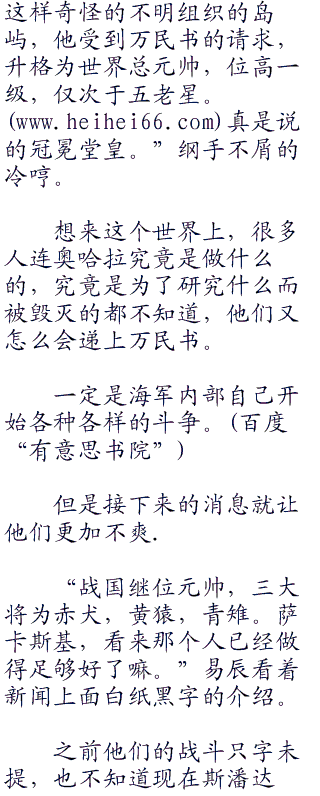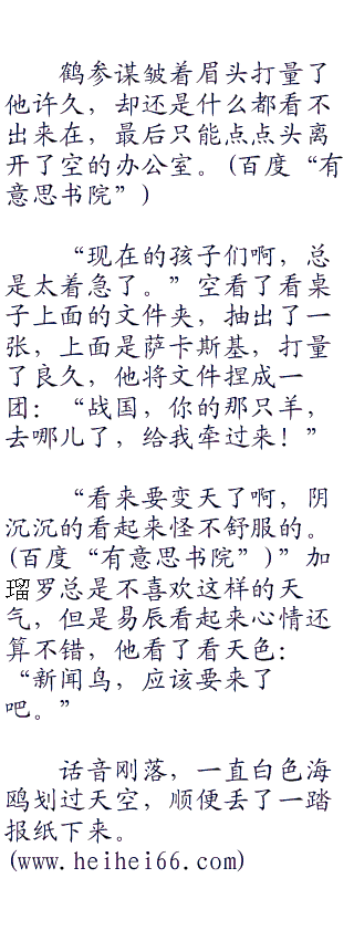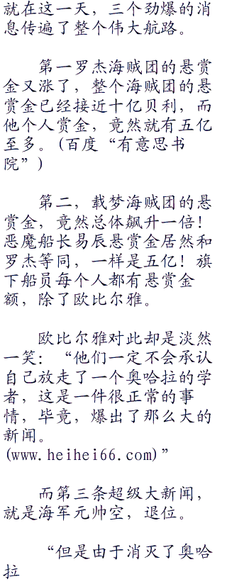 “的确,还有一件事情是关于你的职位。五老星的人说,你担任元帅已经这么久了,功劳数都数不清了,现在正好是年纪,足够荣耀归乡。”鹤参谋看着空,尽管心里十分的难受,但是她仍然看似平静的把话说完了。