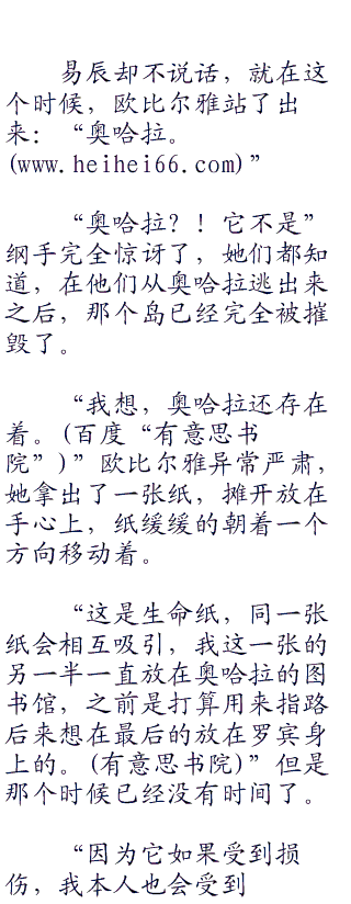“所以,我是说,我们去一个海军找不到的岛。”易辰看起来一点都不着急,他看着欧比尔雅,欧比尔雅沉默了很久,终于抬头。