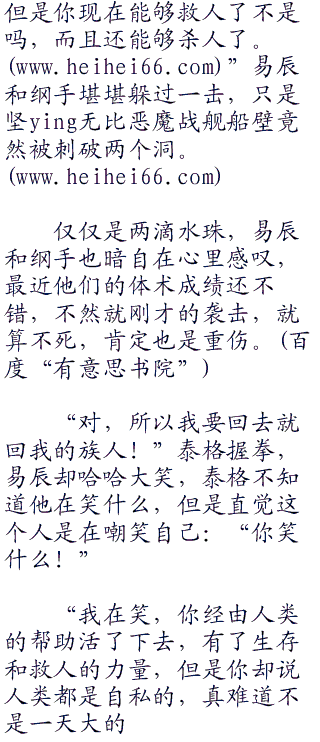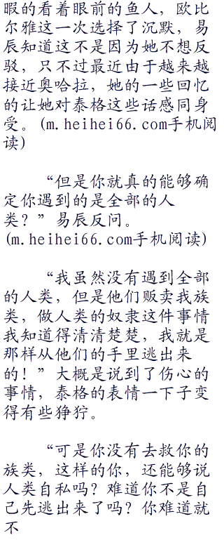 “我的确不太走运,但是通过这件事情我已经足够看清楚人类的真面目,你们都是一群自私虚伪的家伙,只有王妃那样单纯的人鱼,才会相信人鱼、鱼人能够和人类交好!”泰格说着又不自觉的握紧了拳头。