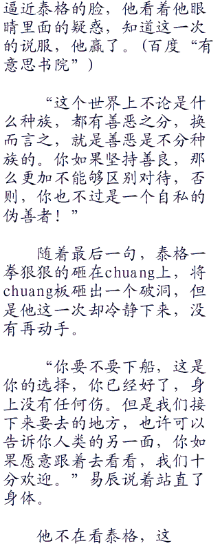 泰格疑惑的看着他们,他总觉得眼前的人,是一个很奇怪的人,虽然这个人似乎太过自信了,但是并不是让人讨厌的感觉。
